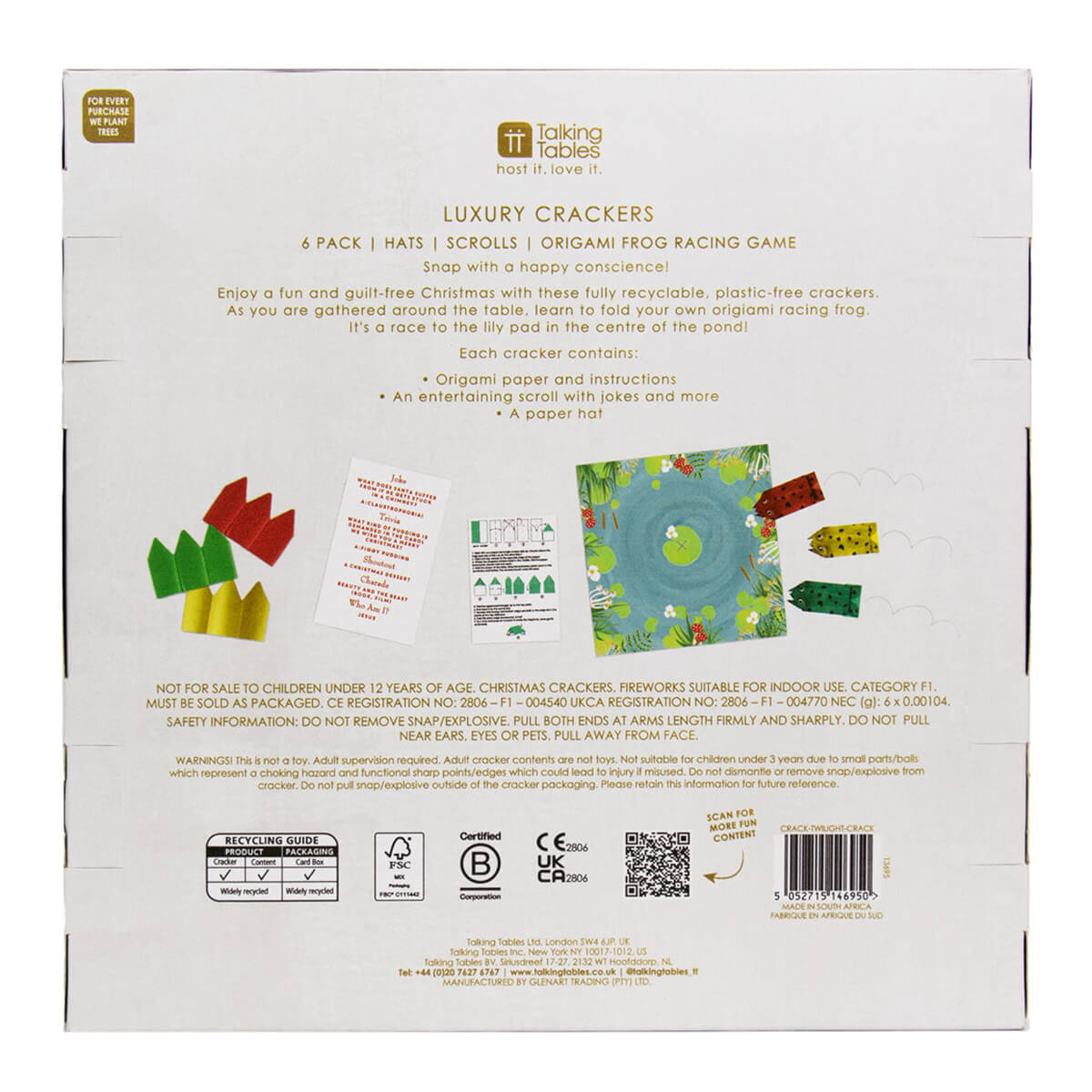 Each cracker includes a scroll with a joke, trivia question, and quick-fire games, as well as a crown and an assorted game.