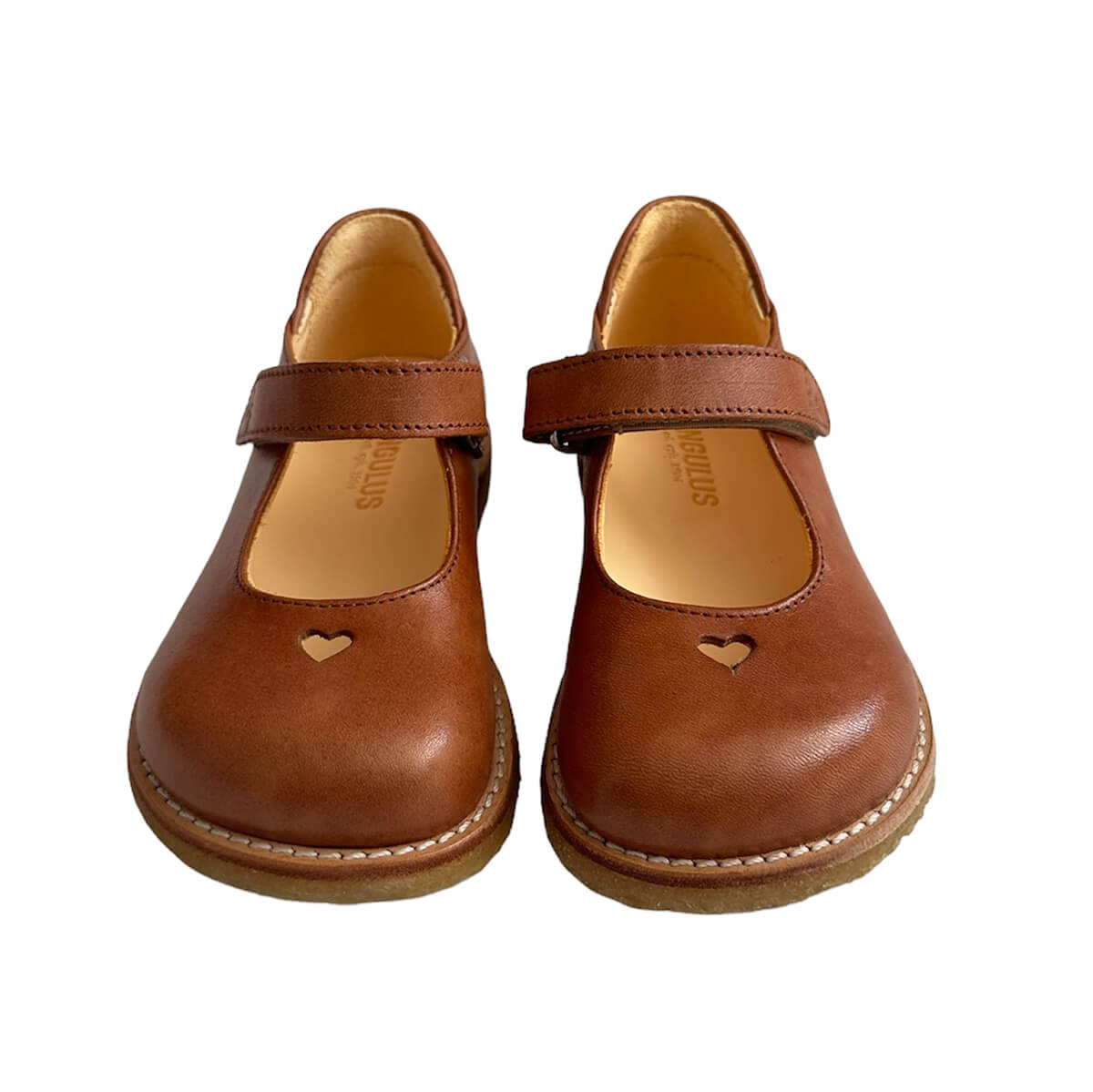 Wide Fit Starter Mary Janes with Heart in Tan by Angulus - Last Ones In Stock - EUR 22-24