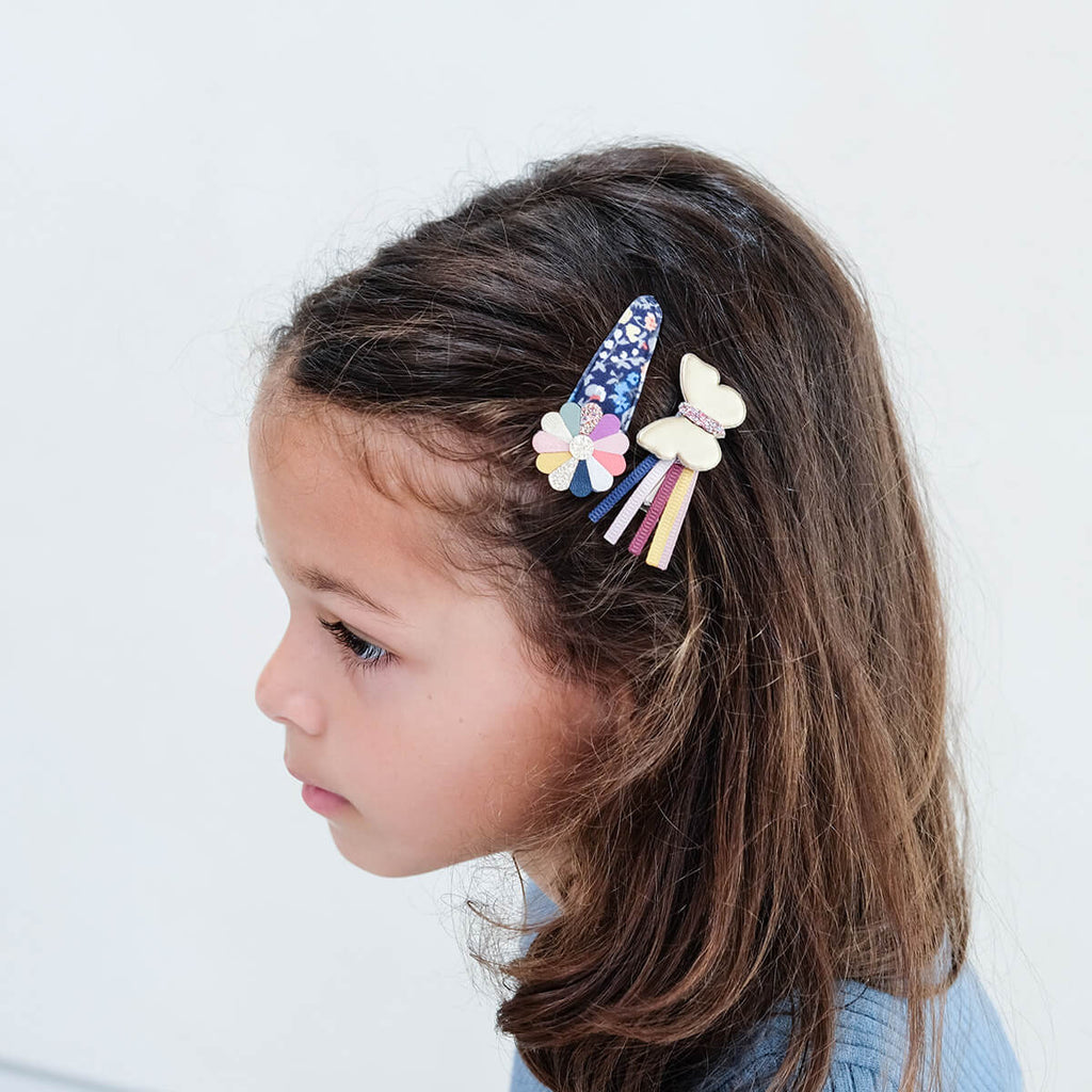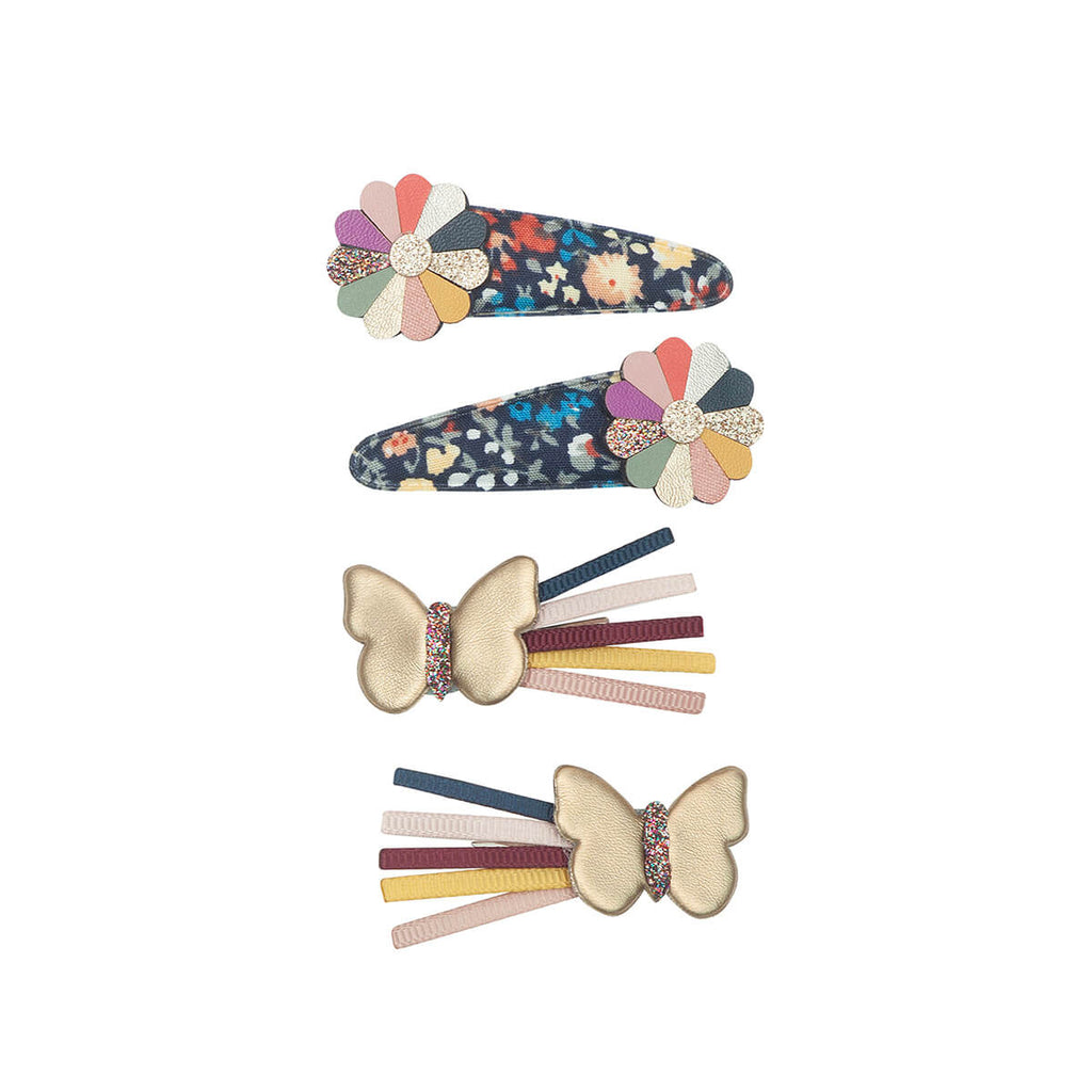 Winter Ivy Butterfly Hair Clips by Mimi & Lula. Two intricately crafted dazzling flower heads and two super sweet golden butterflies, the perfect clip pack to suit every mood! These versatile clips are just perfect for every day.